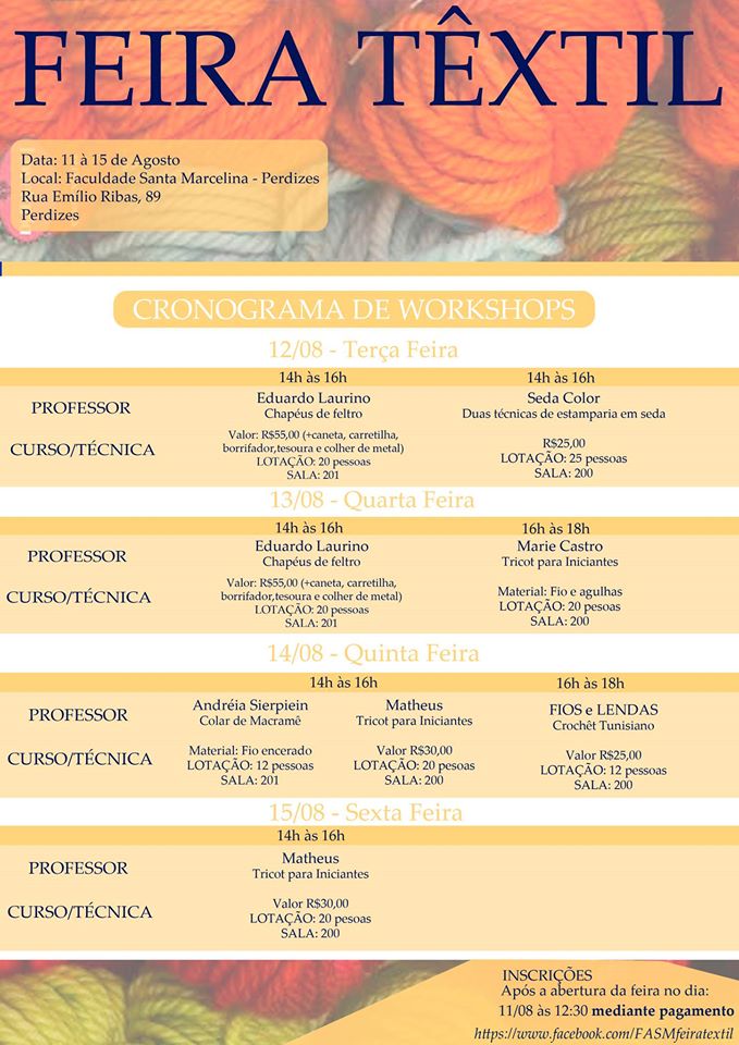 Workshop FIOS E LENDAS de Crochê Tunisiano na Feira Têstil da Faculdade de Moda Santa Marcelina, 14 de Agosto de 2014,