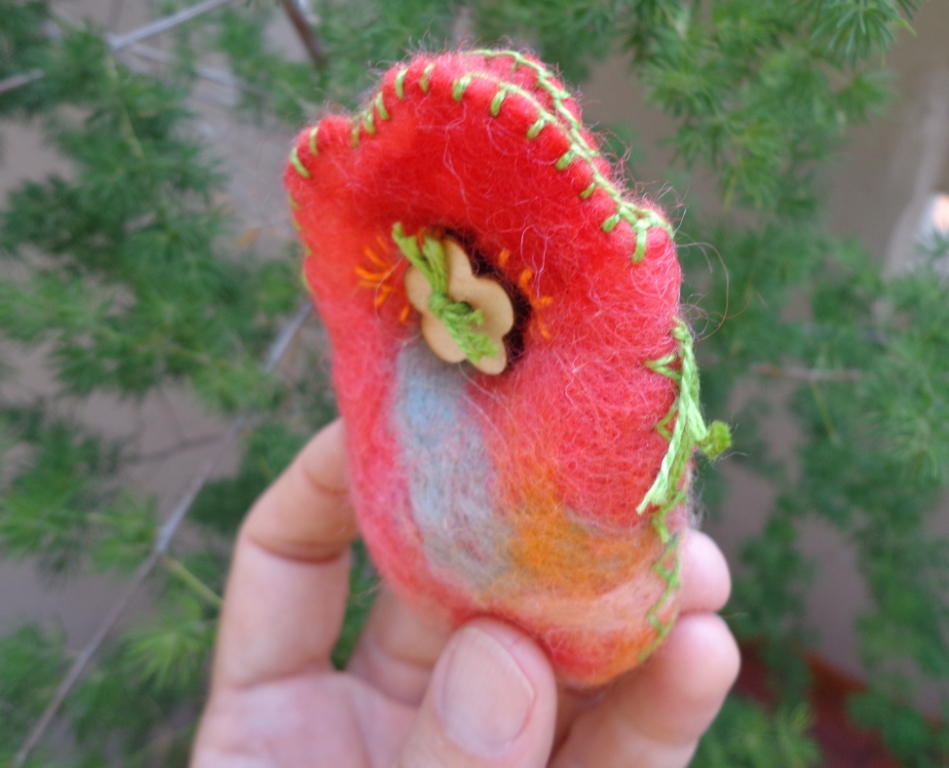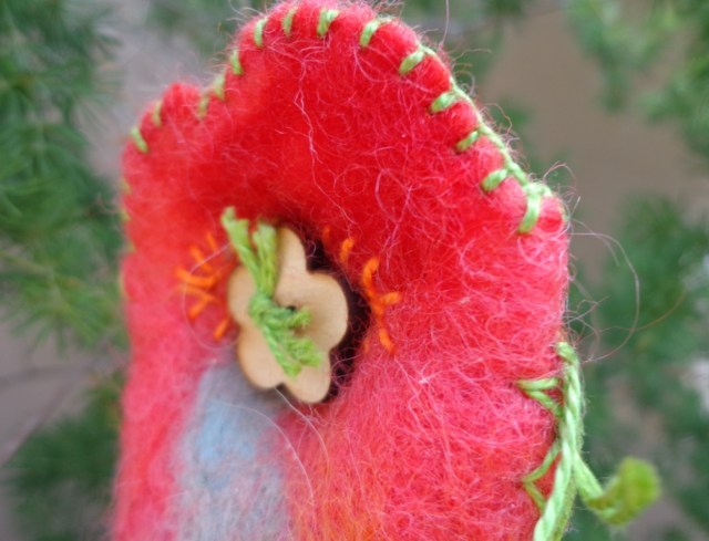 Cortei com cuidado, mantendo as bordas irregulares. Feltrei com agulha os beiradas.