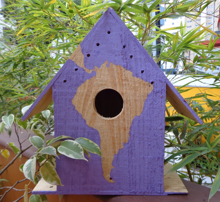 Esta casa de pássaros foi feita pelo Juan, com as crianças da Monte Azul. O Juan é chileno, uma pessoa muito linda, e é com a imagem do trabalho dele que quero compartilhar com vocês as minhas anotações da parte final da palestra do Kaká Werá.