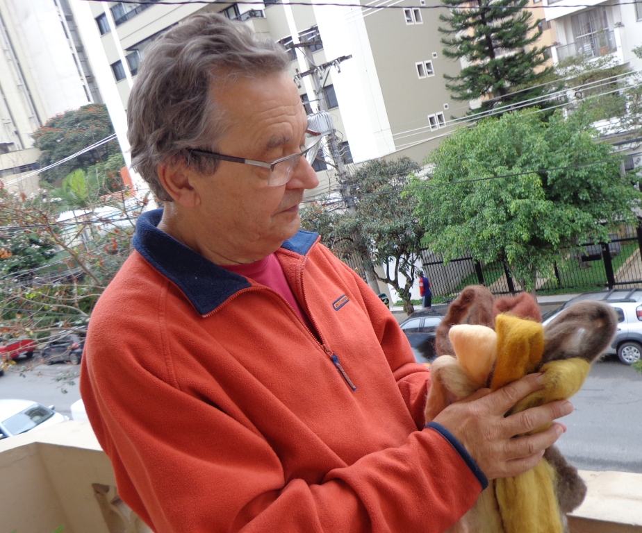 Franz terminou a conversa me contando que vai trabalhar com lã mais fina, de fibra mais longa para o Kit Nossas Peles, o que vai facilitar e valorizar muito o processo de elaboração das peças.