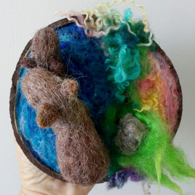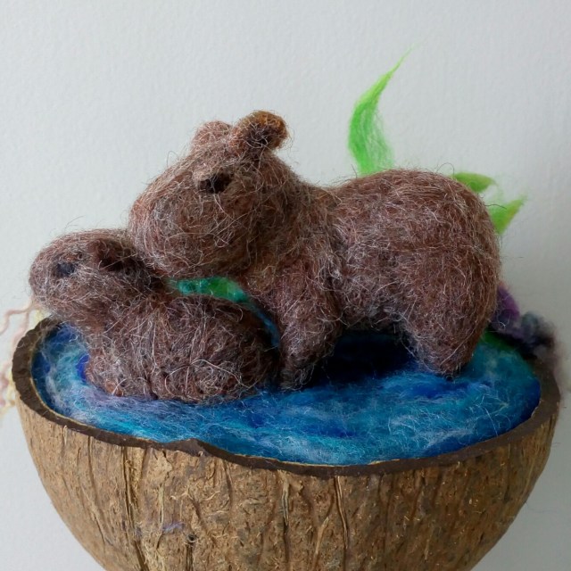 Eu fiz para a família um prqueno cenário, com o que as capivaras gostam para viver: rio, gramas diversas e vegetação semi-aquática.