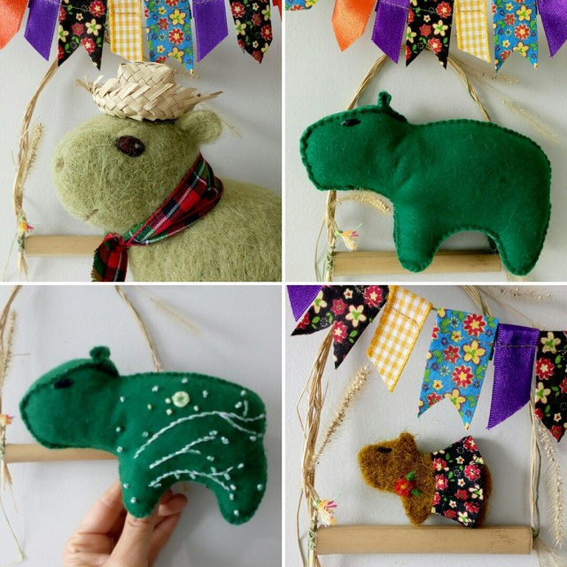 A minha Capipótoma verde, ganhou adereços de festa junina e o cenário, bandeirinhas. E vamos que vamos, retomando uma capivara por dia a partir de amanhã.