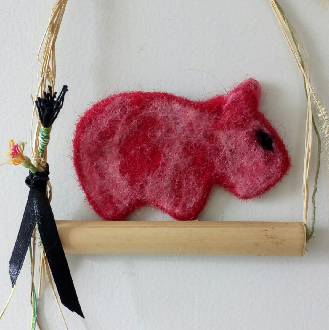 Recortei uma Capivara. O corte com tesoura de uma peça feltrada, cria extremidades dificeis de serem compactadas com agulha. Fiz agulhamento, coloquei orelhas e olhos mas o entorno continuou solto (veja a primeira foto).