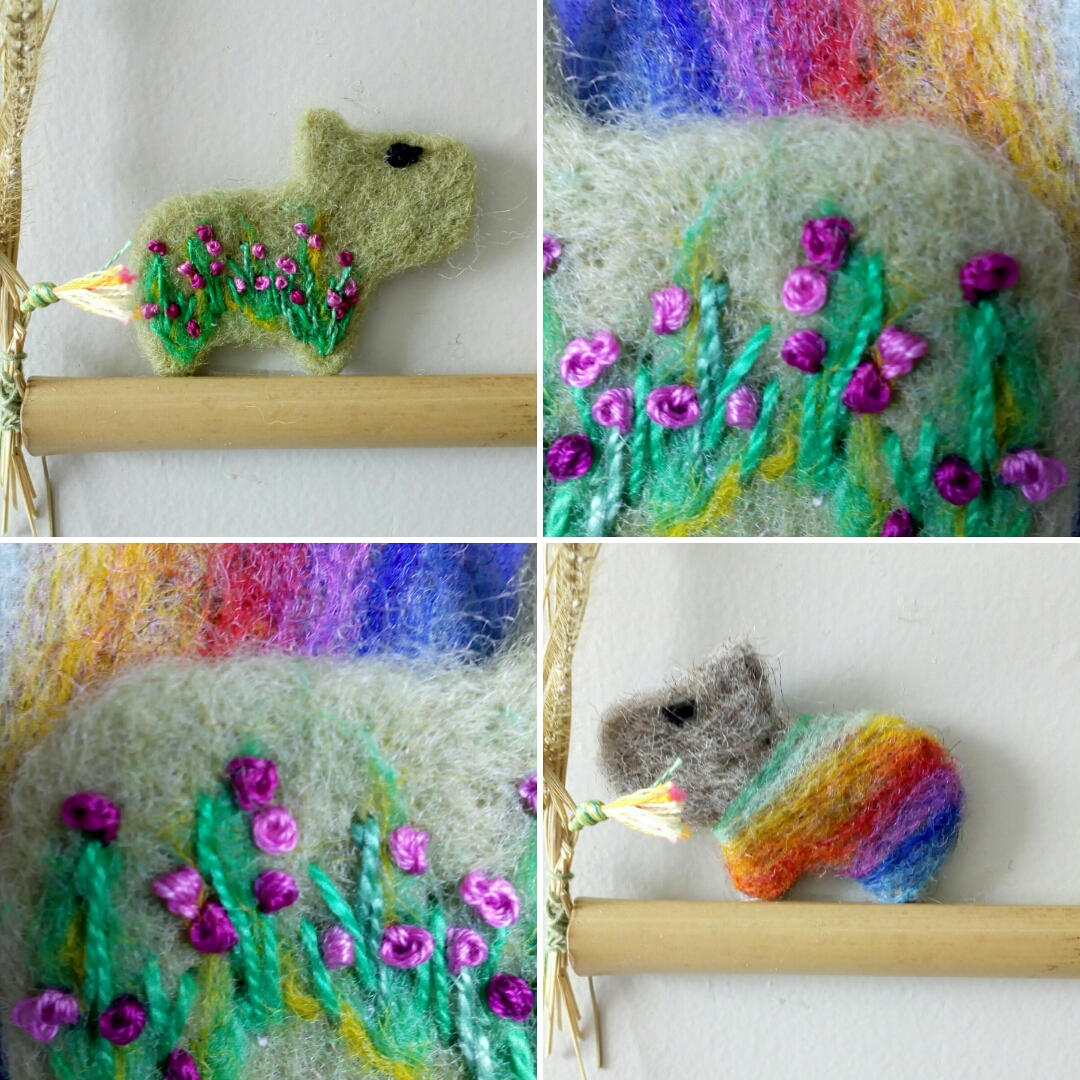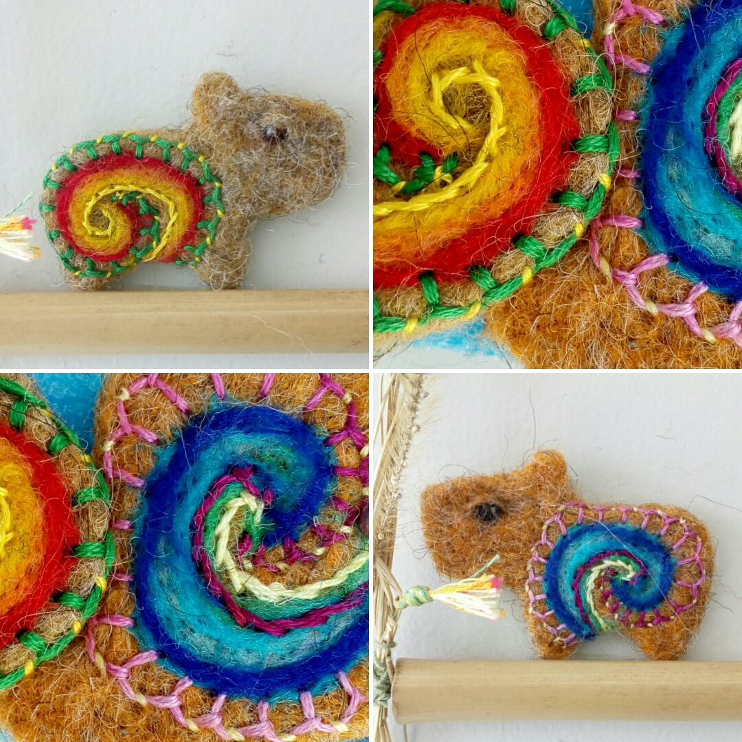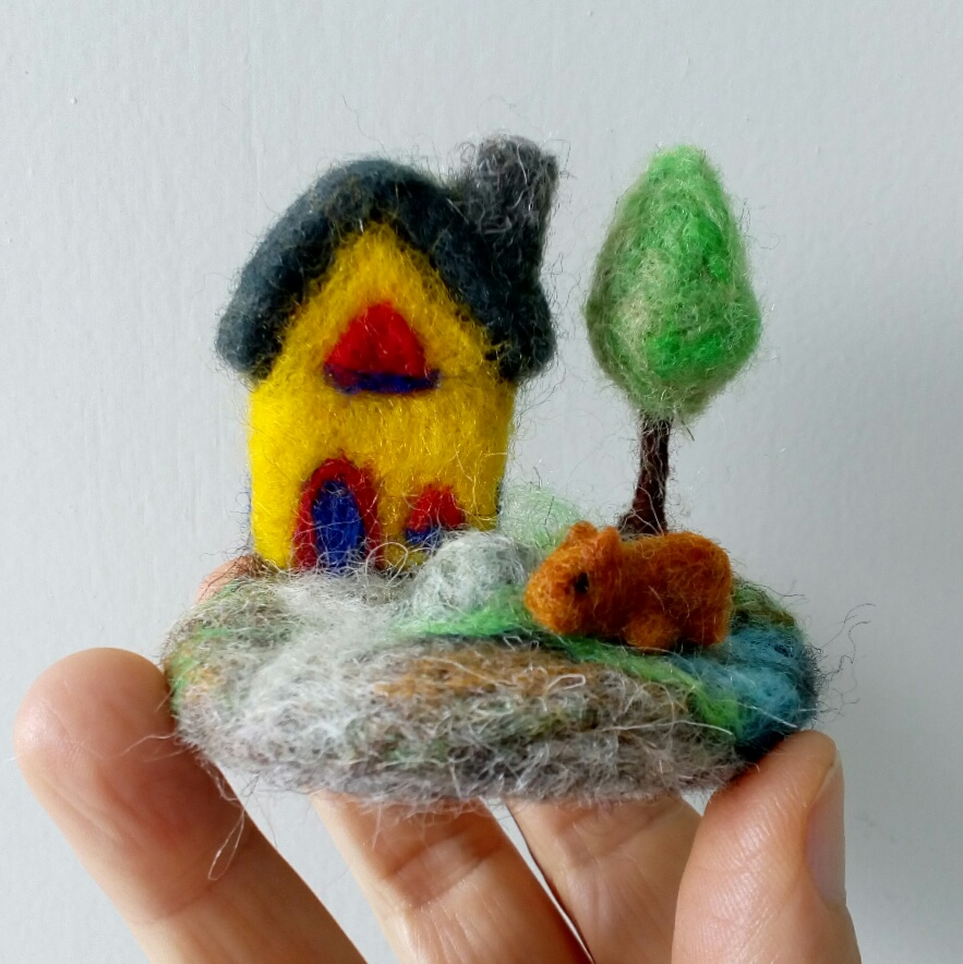 Ontem postei um vídeo, com dicas de moldes e formas, que podemos utilizar na feltragem com agulha.Comecei um pequeno cenário que seria apenas com casa, árvore, pedra e caminho. Mas não resisti, acabei fazendo uma capivara, que pediu um lago, que pediu vegetação no entorno… Muito pequena, deu muito trabalho, mas ficou charmosa!A Feltragem ė assim, uma técnica de sobreposição de camadas. É preciso desapego, deixar a imaginação e a criatividade explorarem as possibilidades do trabalho.