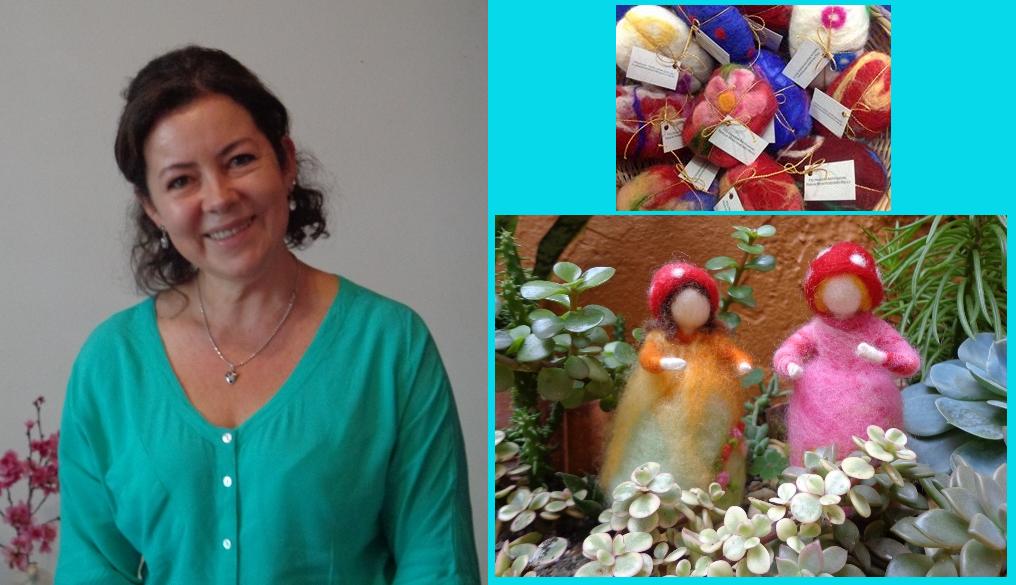 Em julho de 2013 ela conheceu a feltragem numa oficina da Fios e Lendas, ministrada pela Nadja Montenegro Ricci. Apaixonou-se pela técnica, pelo material e todos nós ficamos apaixonados por ela e pela delicadeza e beleza das peças que elaborou.