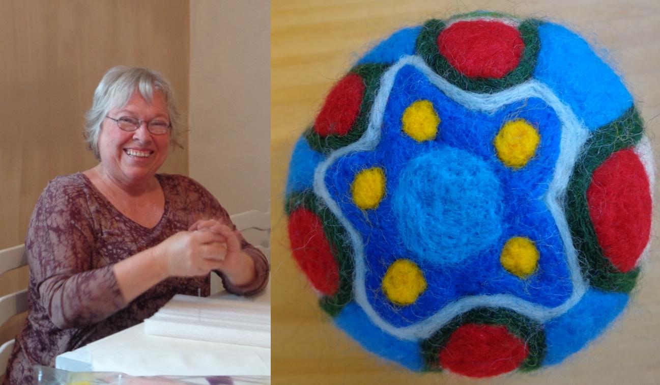 Agora ela vai desenvolver uma oficina na Fios e Lendas, onde os participantes receberão uma bola já feltrada e poderão feltrar a sua própria mandala.